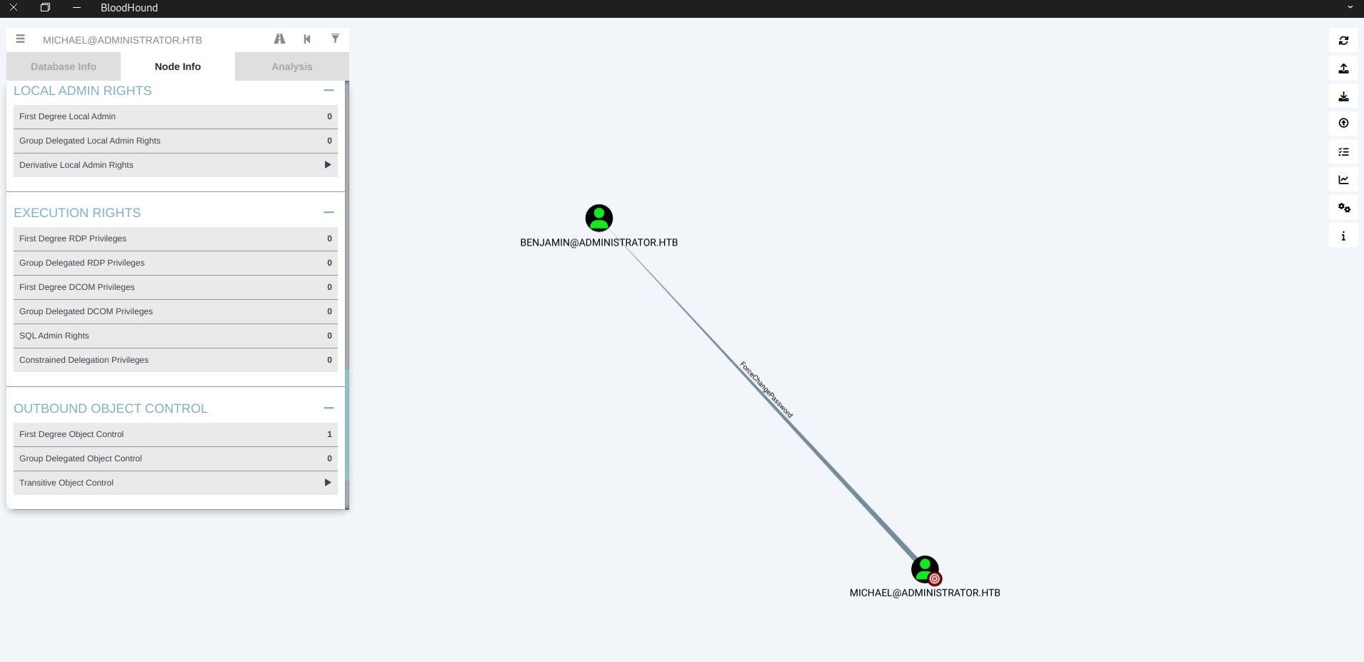 Administrator starts off with a given credentials by box creator for olivia. Using this credentials, Domain info can be dumped and viewed with bloodhound. From the Bloodhound olivia user has GenericAll rights on michael user which can be used to change the user password. Michael user has ForceChangePassword on benjamin user and his password can also be changed. With benjamin’s password, attacker can login to ftp to download a backup file. From the file emily user is owned.Emily has GenericWrite on ethan which can be abused with targetedKerberoast. Ethan has DSync right on Domain Controller which can be used to dump Administrator hash.