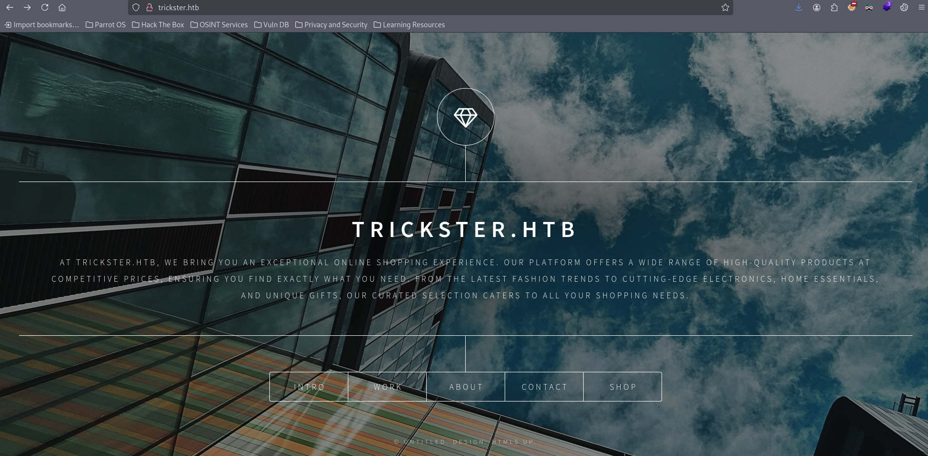 Clicking the buttons below and one of them gives a new domain shop.trickster.htb.