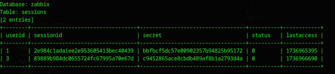 Got a 2 results for admin user, we know sessionids expire after some time so trying to see which is the valid one. First sessionid works out.