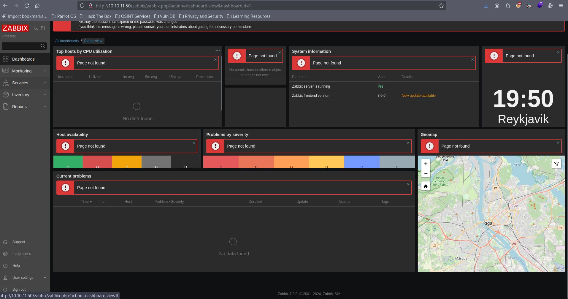 We got the dashboard page. The Zabbix version can be seen as 7.0.0. Searching the web gives us two vulnerabilities. CVE-2024-36467 and CVE-2024-42327.